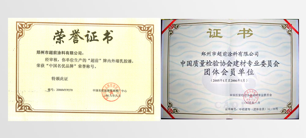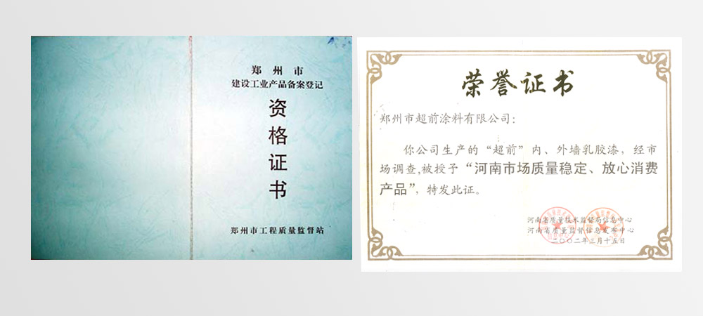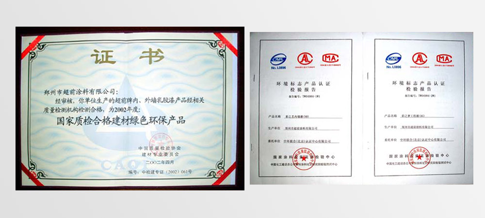 • 2002年評為“國家質檢合格建材綠色環保產品”、 “河南市場質量穩定、放心消費產品”