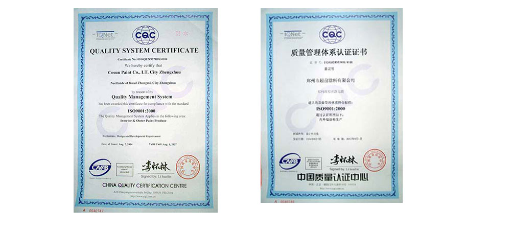 • 2004年通過《中國質量認證中心》獲得“ISO9001:2000中國質量管理體系認證證書”、 獲得“中國環境標志產品認證證書”