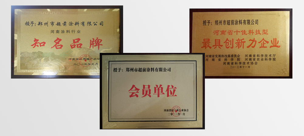 • 2013年榮獲河南省十佳科技型最具創新力企業、“河南涂料行業知名品牌”,并加入“河南省輕工業行業協會”