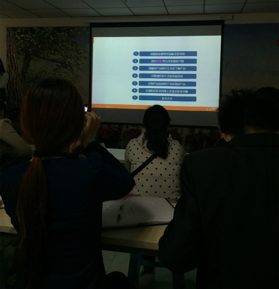 超前涂料有限公司是一個生產銷售型的企業,主要生產和銷售真石漆,內外墻乳膠漆,質感漆,水包水多彩漆,拉毛漆等外墻涂料。在線下,我們已經有十幾年的經驗,但是線上的經驗卻只有1個月,所以,一聽說阿里巴巴這周有培訓課程,電商的4位超前超人們趕緊報名前來參加: