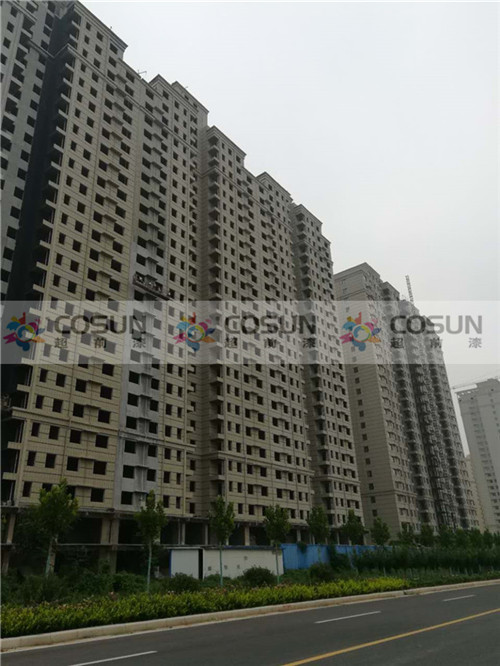 洛陽彤輝·水天伊色工地面積18萬平方,甲方經過層層篩選,超前涂料以高質量、高品質、過硬的技術團隊、完善的售后服務,成為該小區指定外墻用漆供應商,項目中真石漆為指定產品。
